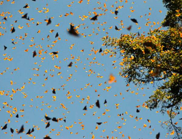In the fall, Journey North continues to accept sightings in all of these categories, while adding an emphasis on collecting reports of fall roosts. In the fall, monarchs travel alone during the day. At night, they come together to form roosts, gathering in trees. These gatherings, whether they're of 10 monarchs or 1,000, are a key indicator of migrating monarchs.