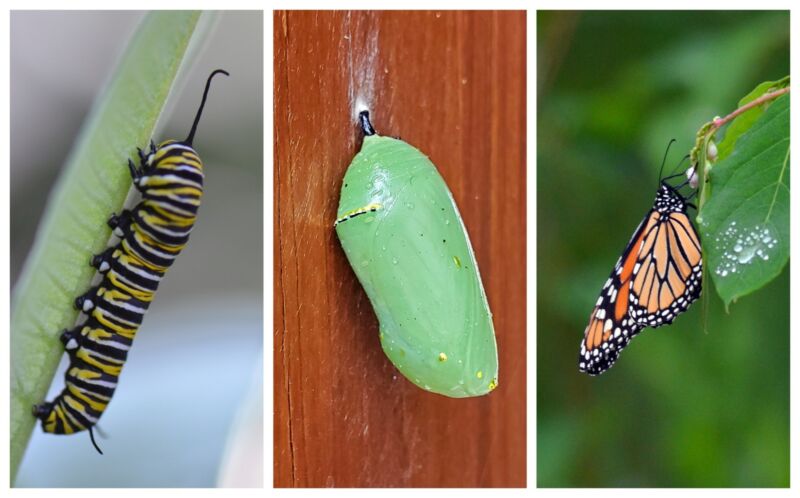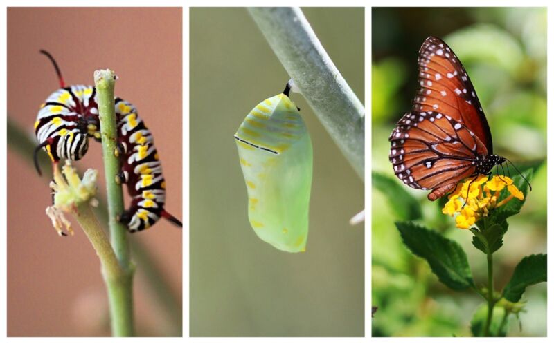 Monarchs and queens look alike at both the egg and larval stages as well. Take a look at the stages of development for queens. Do they look familiar?